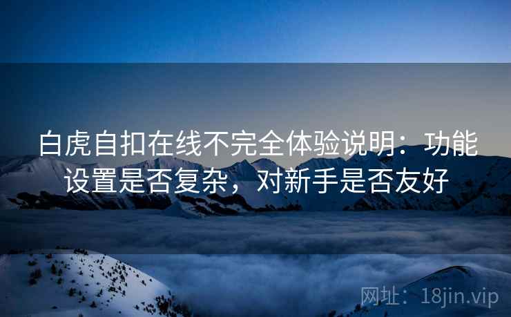 白虎自扣在线不完全体验说明:功能设置是否复杂,对新手是否友好